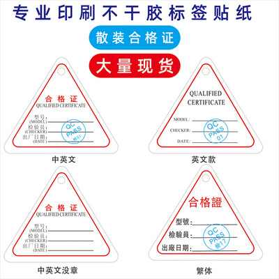 三角形合格证吊牌 中性产品合格证 不干胶标签贴纸印刷定做/定制