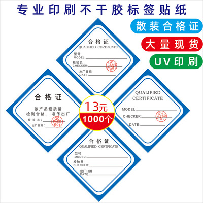 菱形合格证 中英文/英文产品合格证 不干胶标签定制 贴纸印刷定做