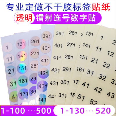 现货透明连号数字贴 镭射防水编号贴纸 不干胶标签 贴纸印刷定 制