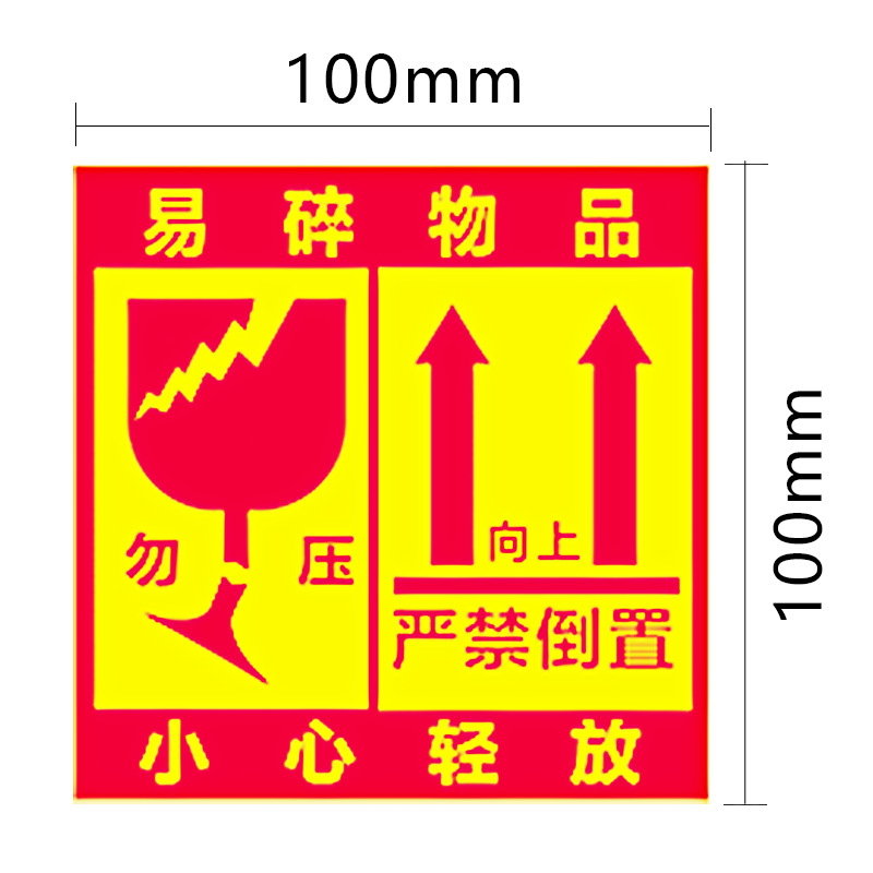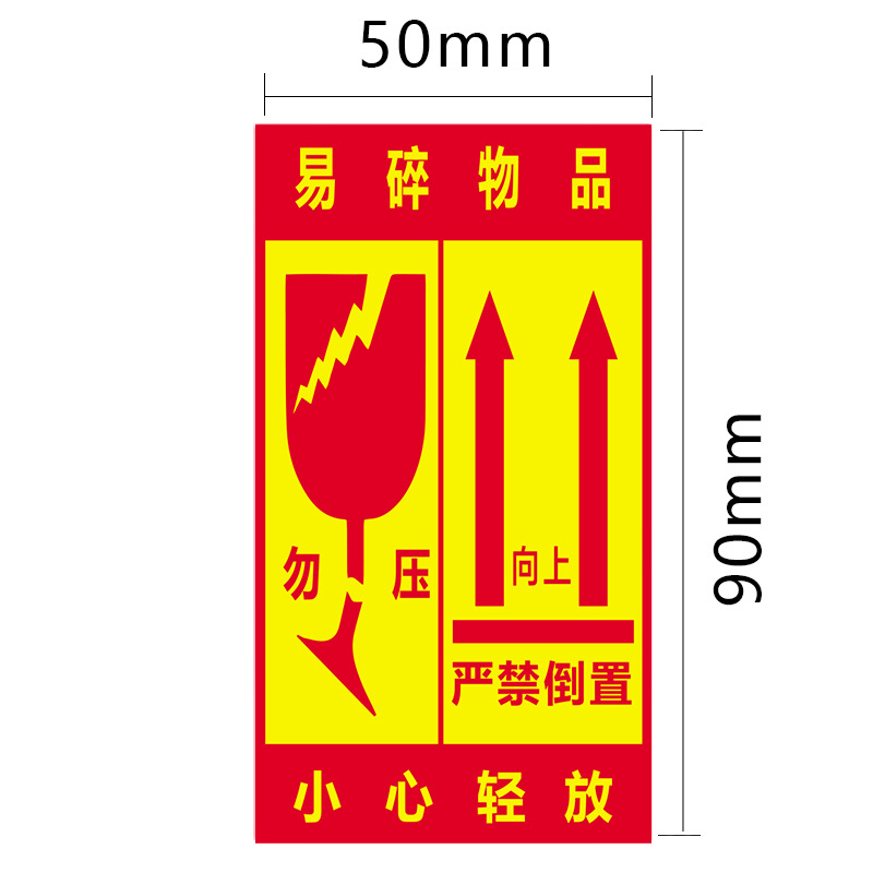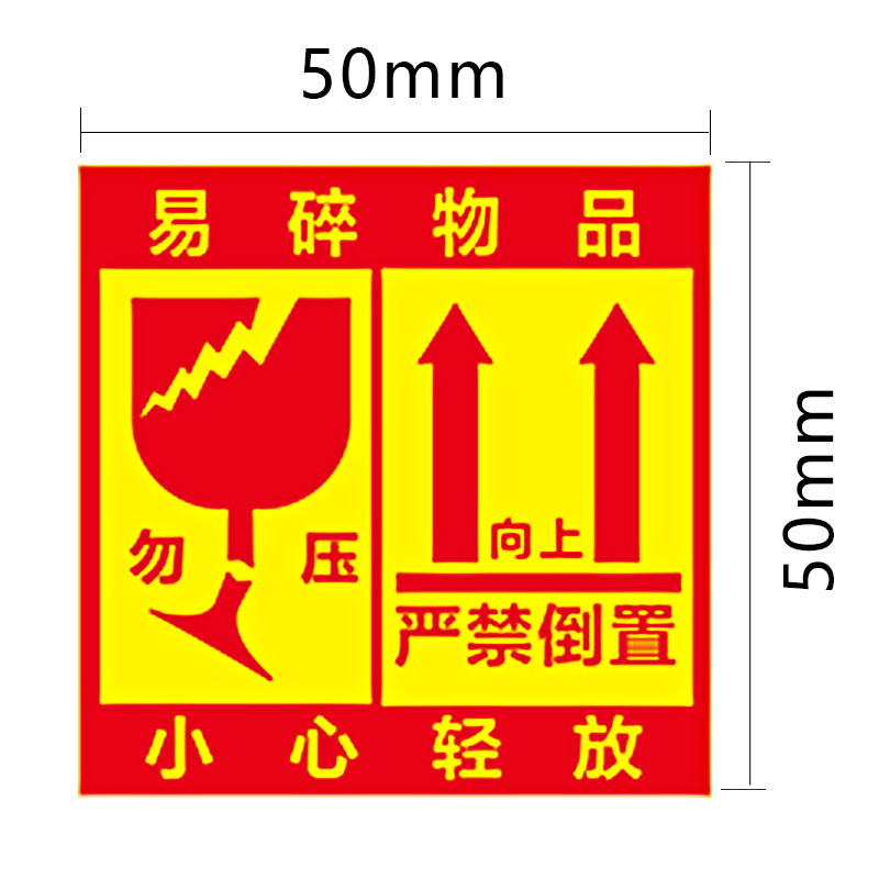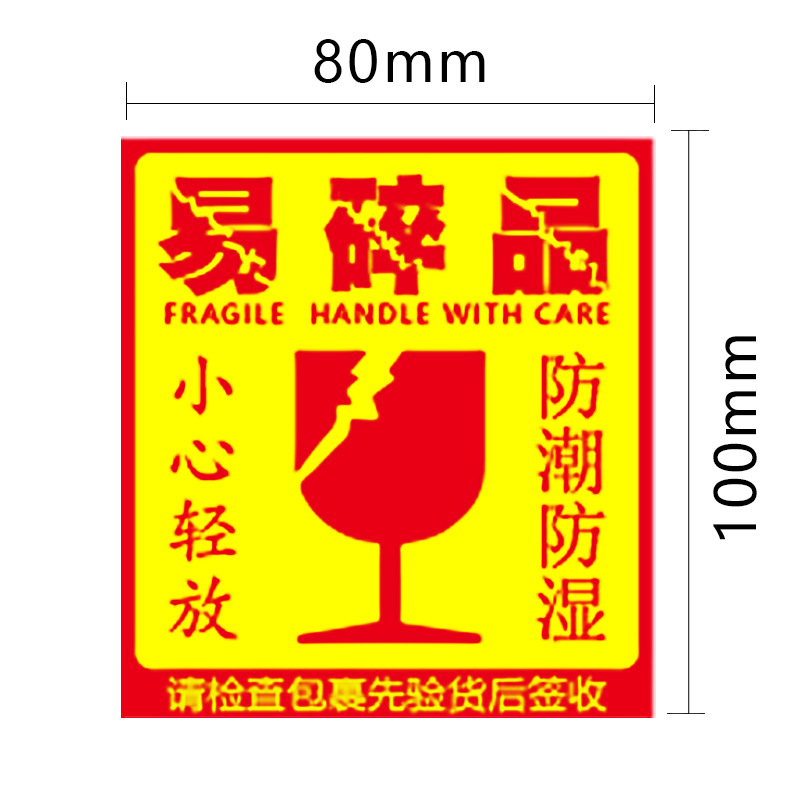易碎品贴纸易损警示贴小心轻放勿压勿摔不干胶标签快递箱标签现货