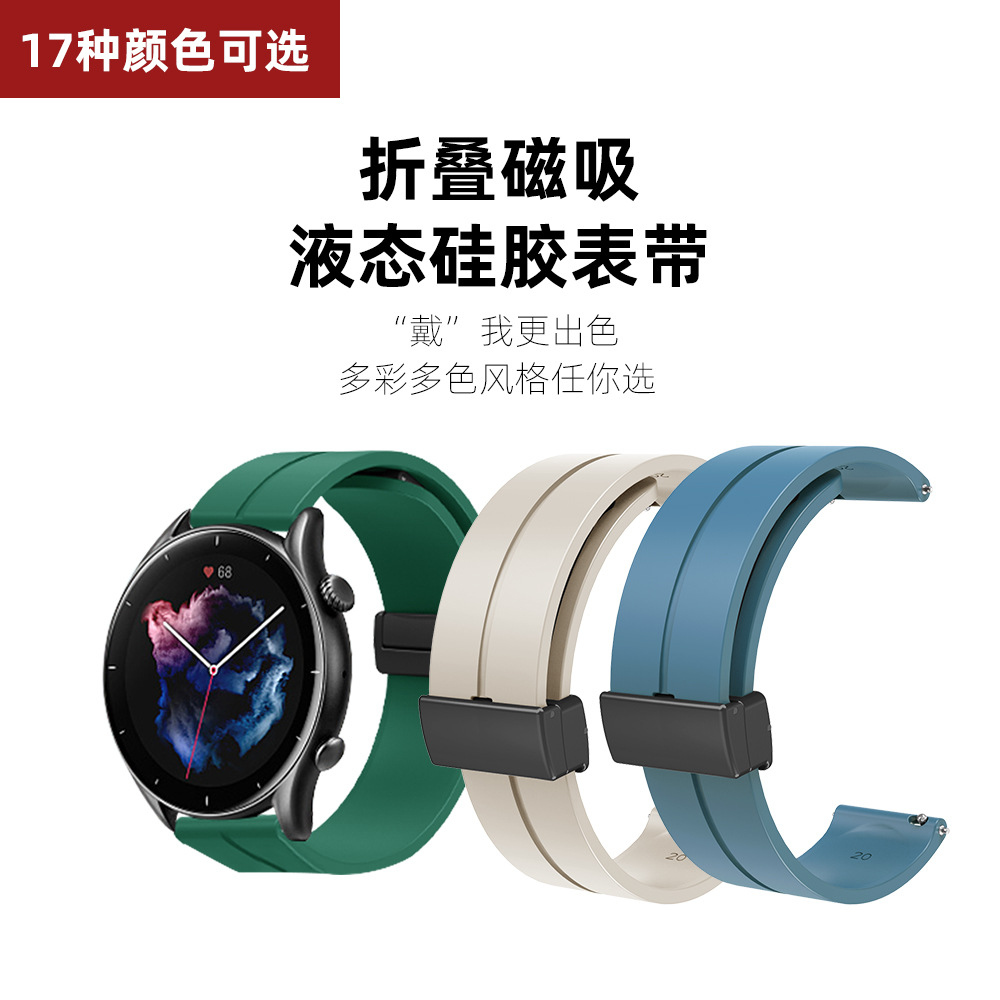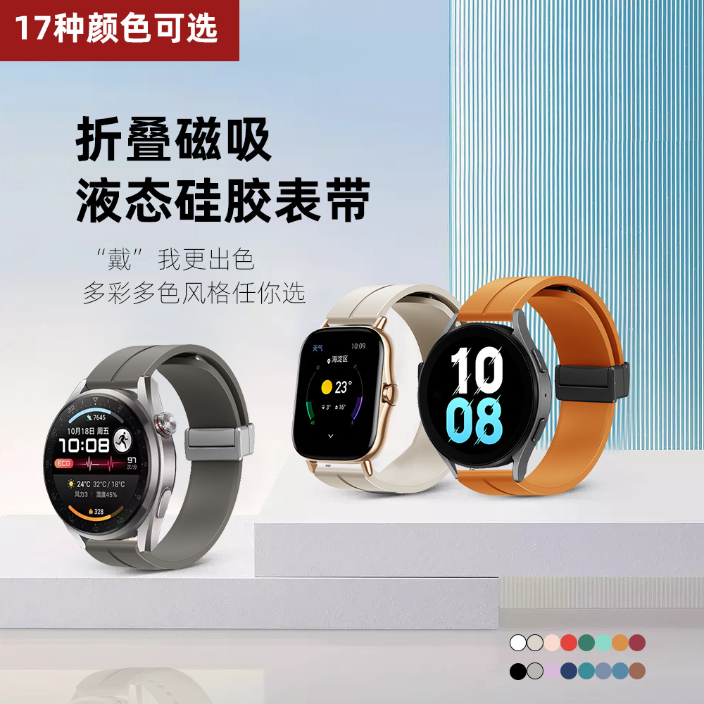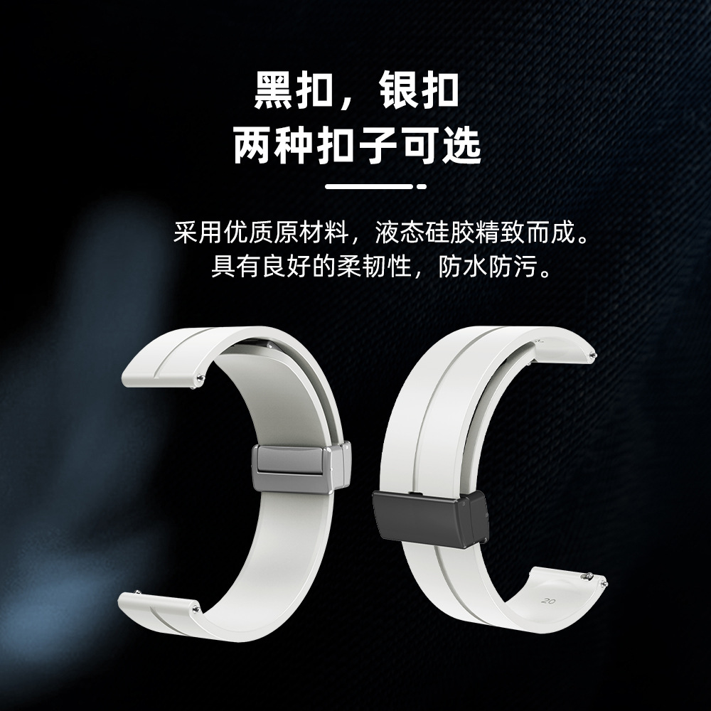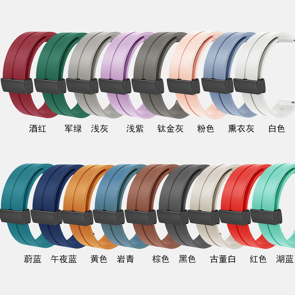 Applicable to Huawei Huami Samsung Jiaming folding magnetic silicone strap 12-14-16-18-20-22mm