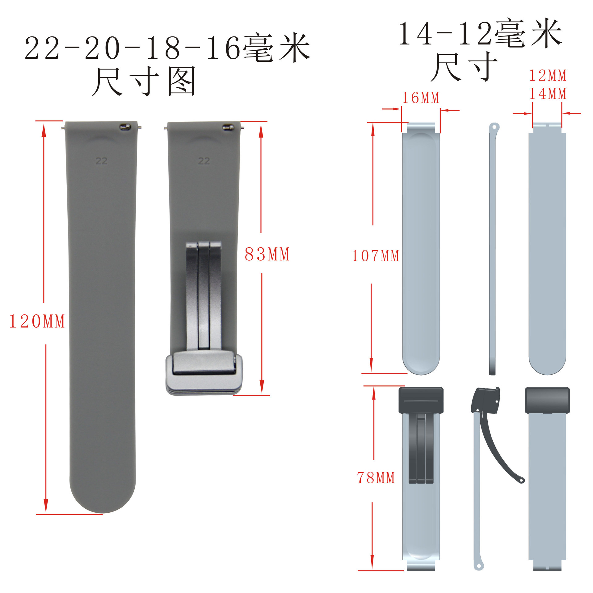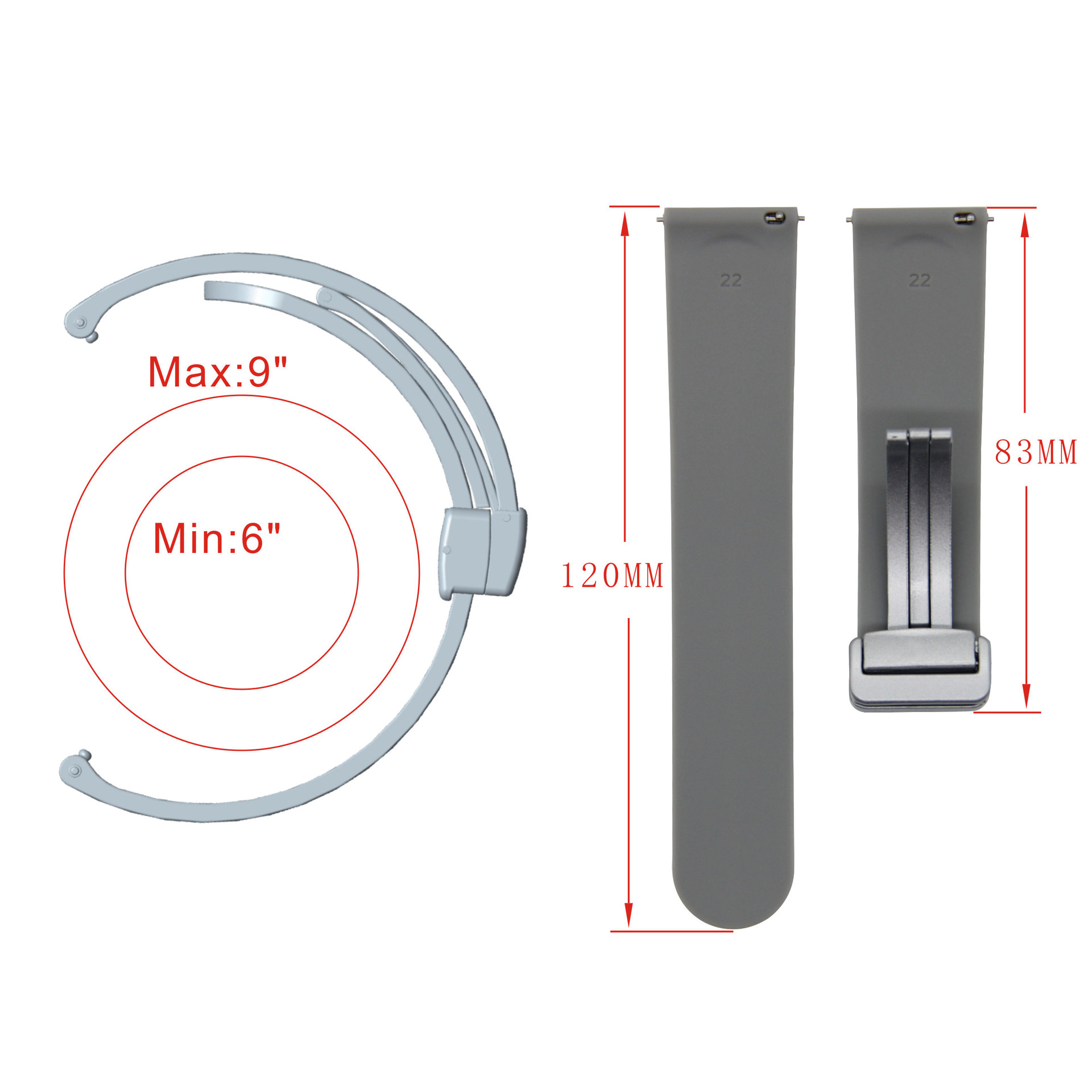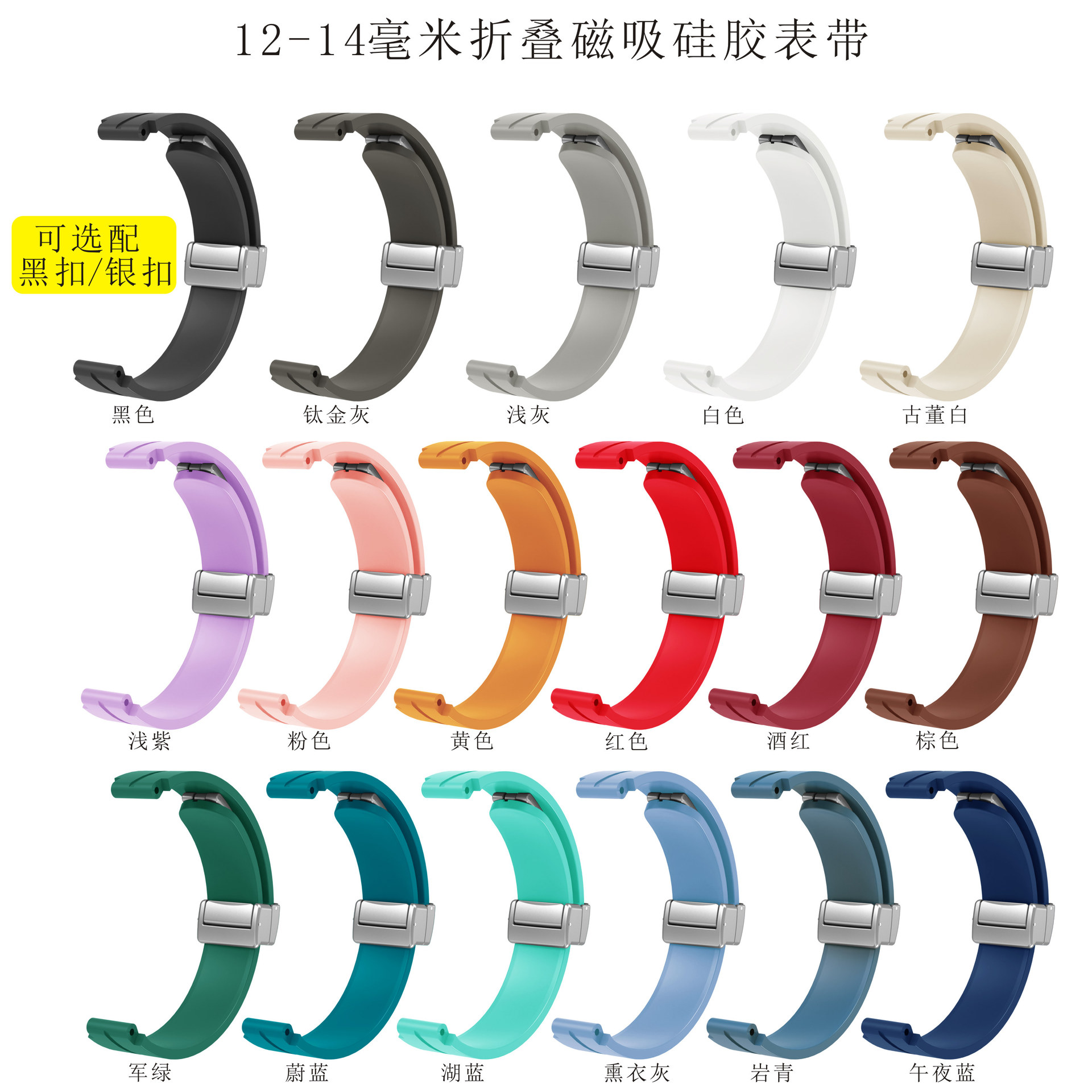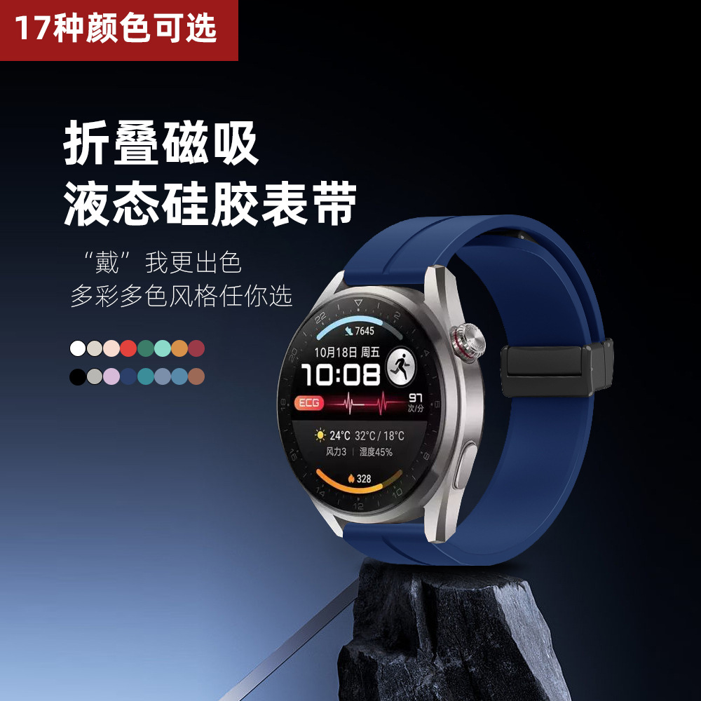 Applicable to Huawei Huami Samsung Jiaming folding magnetic silicone strap 12-14-16-18-20-22mm