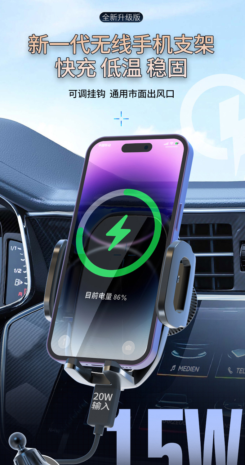 Manufacturer Wireless Charging Navigation Mobile Phone Holder 15W Fast Charging Air Outlet Universal Car Navigation Car Mobile Phone Holder