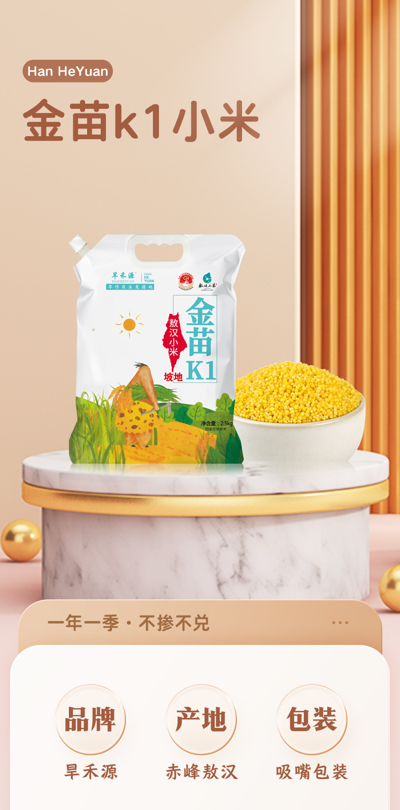 Dryheyuanhan Slope Gold Seedling K1 Yellow Millet 2.5kg Sweet Whole Grain Capsuless Full Yellow Millet