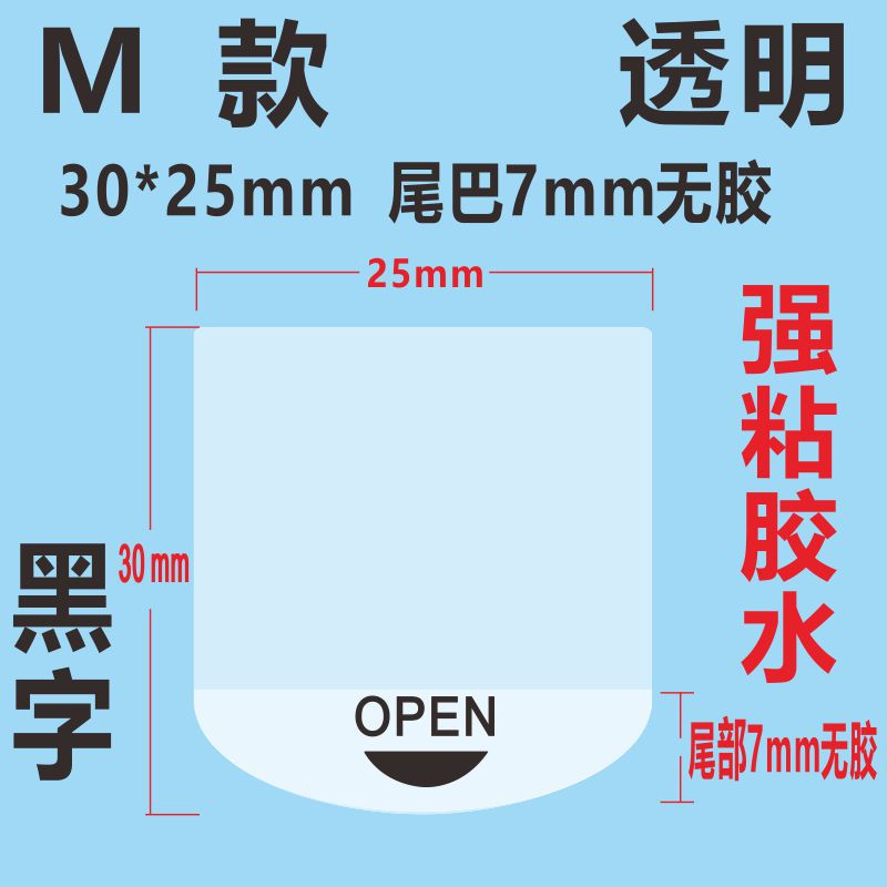 in stock Transparent OPEN Easy Tear Sticker Interval Half Adhesive Label Tail Glue-free Packaging Box Kraft Paper Strong Adhesive Sealing Sticker