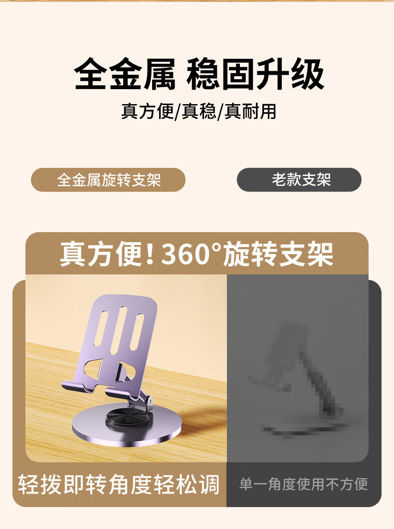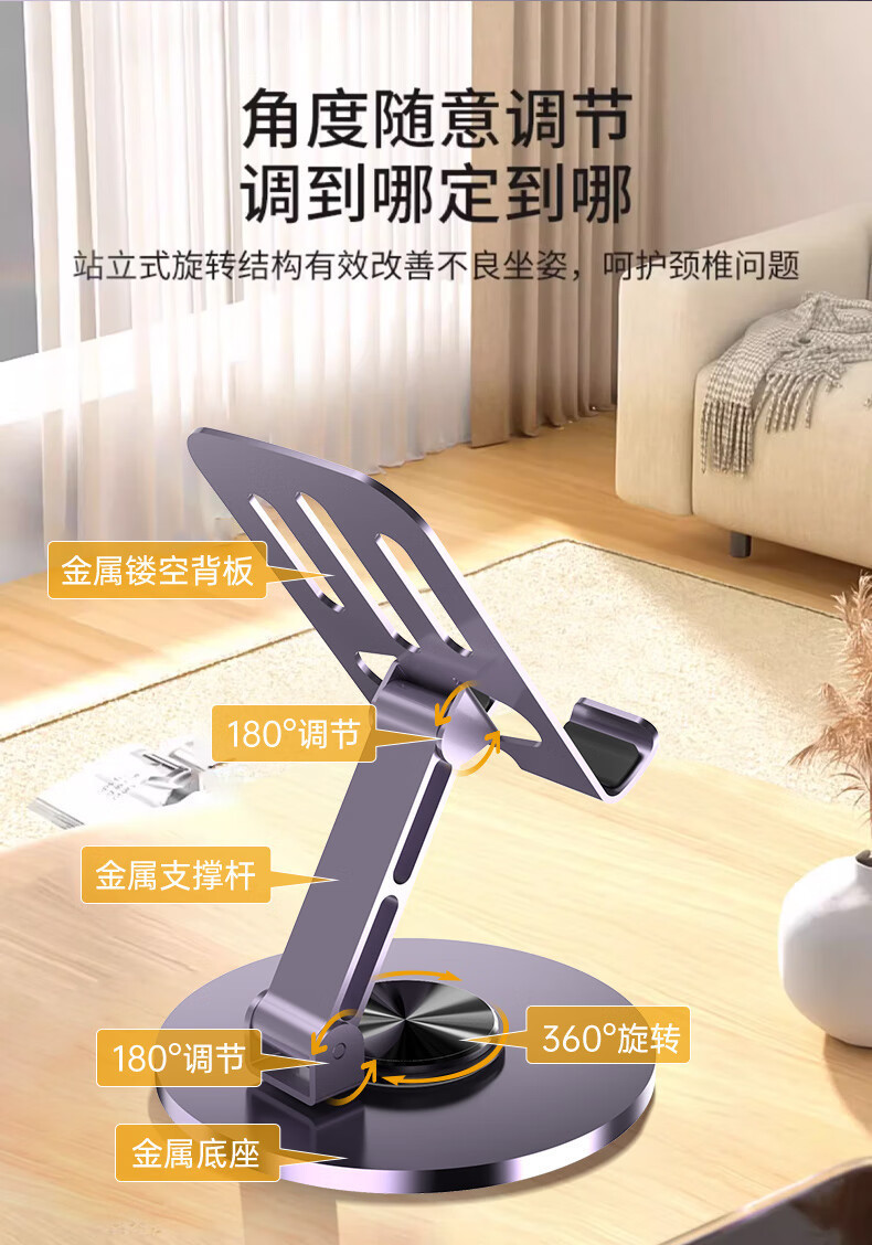 Light Luxury Version All-Metal Mobile Phone Holder 360-Degree Rotating Foldableable Lazy Alloy Mobile Phone Holder Tablet Holder