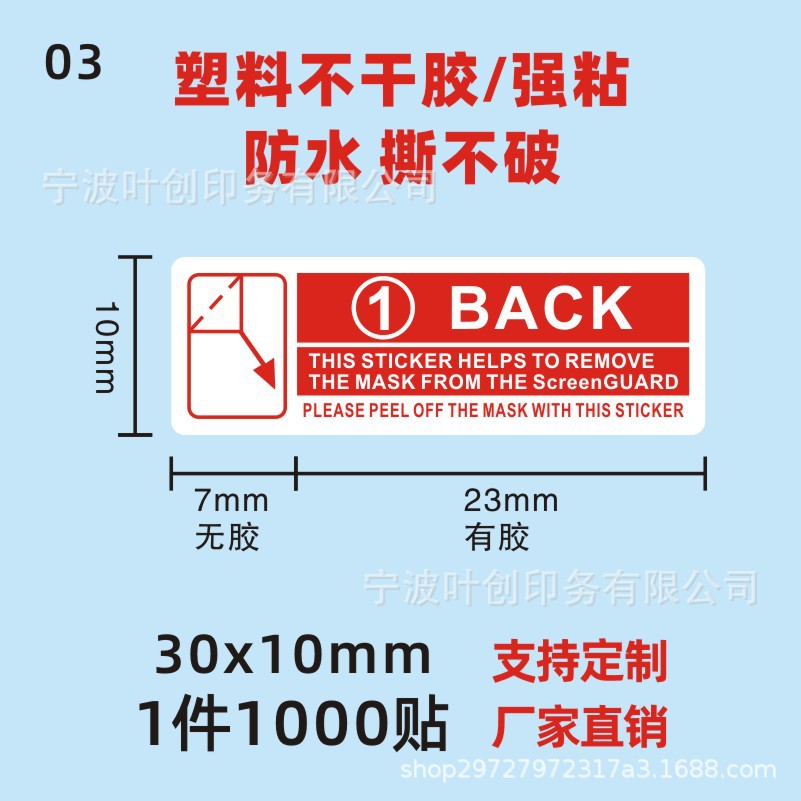 Mobile Phone Film Tear Label Screen Protective Film Tear Label Tempered Film Super Adhesive Interval Adhesive Square Film Label
