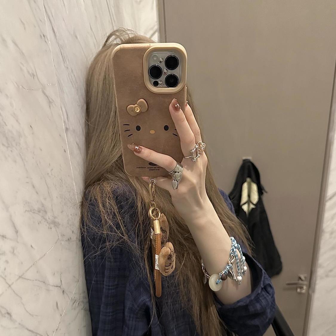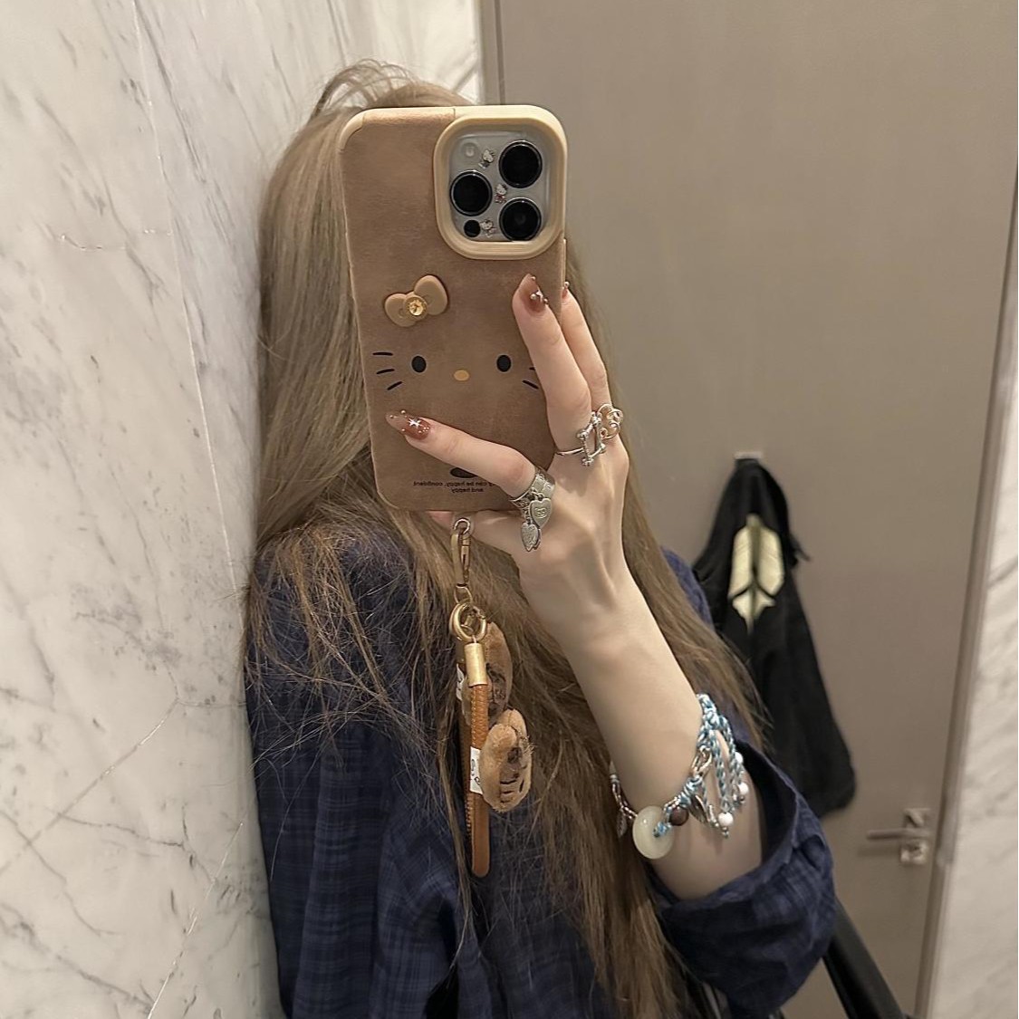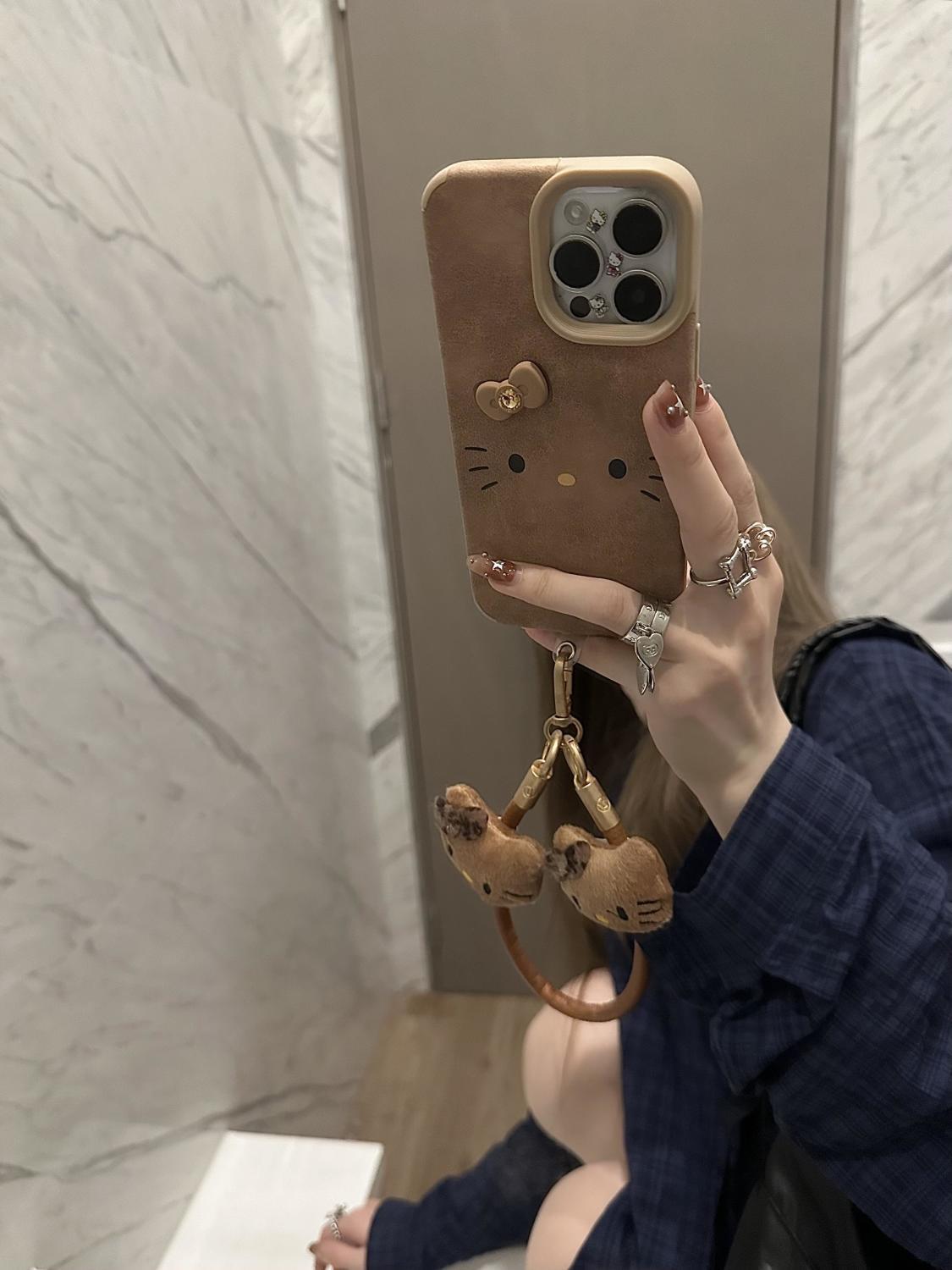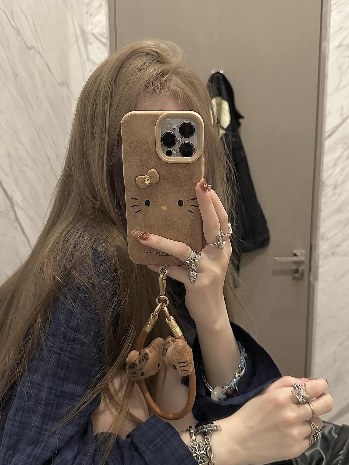 Lambskin Hello Kitty Apple 16ProMax Mobile Phone Case iPhone15Pro New 13 Women 12 Soft 14 Set 11