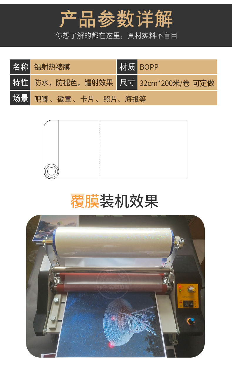 Laminating Machine Hot Mounting Film Laser Pre-coating Film Barb Film Penetrating Badge Protective Film Plain Surface Graphic Photo Plastic Film
