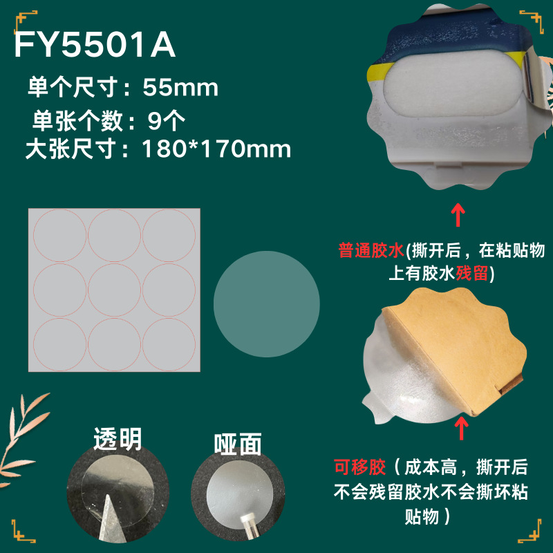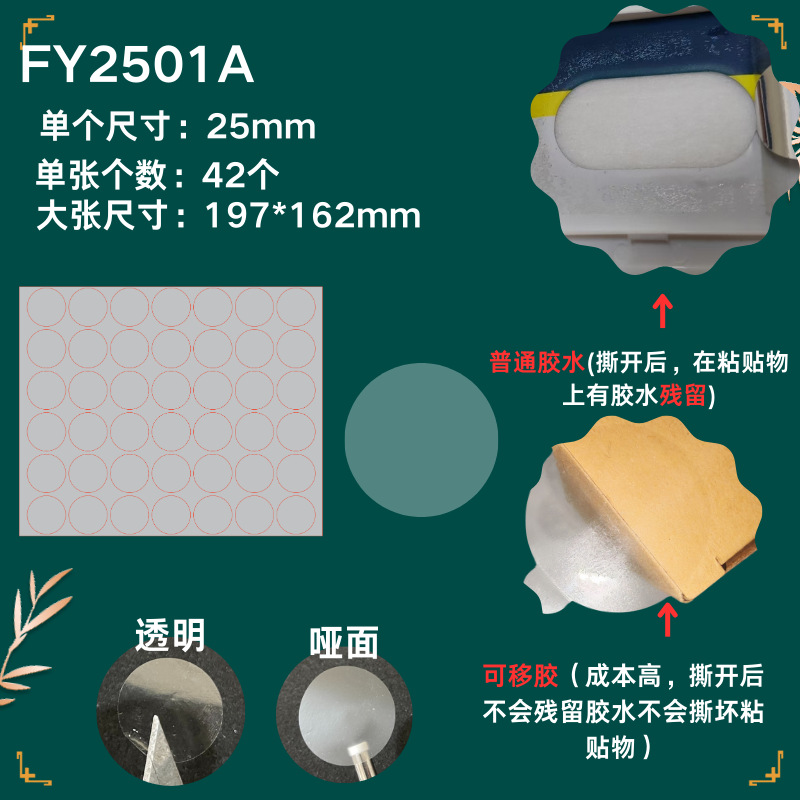 65mm=1000 stickers per pack; 2.5 silk transparent special adhesive and stable glue (the strongest stickiness and no warping)