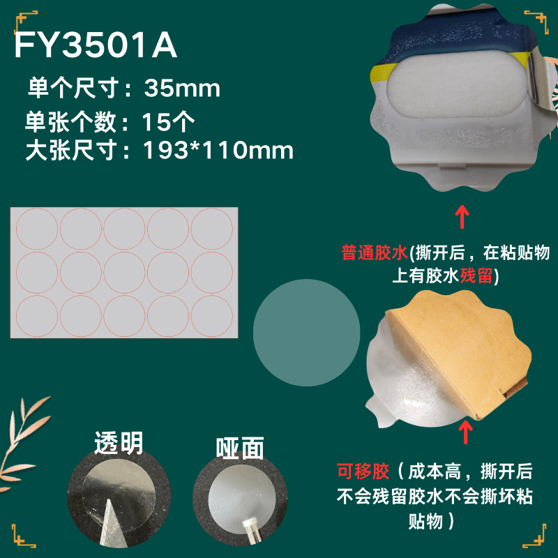 65mm=1000 stickers per pack; 2.5 silk transparent strong adhesive