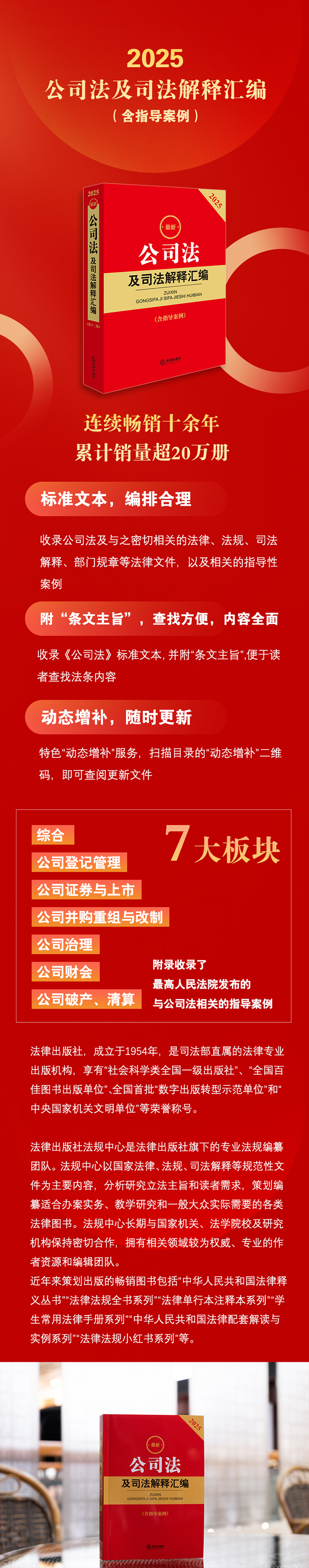 2025年版《*新公司法及司法解释汇编》全书分为综合,公司登记管理,公司证券与上市,公司并购重组与改制,