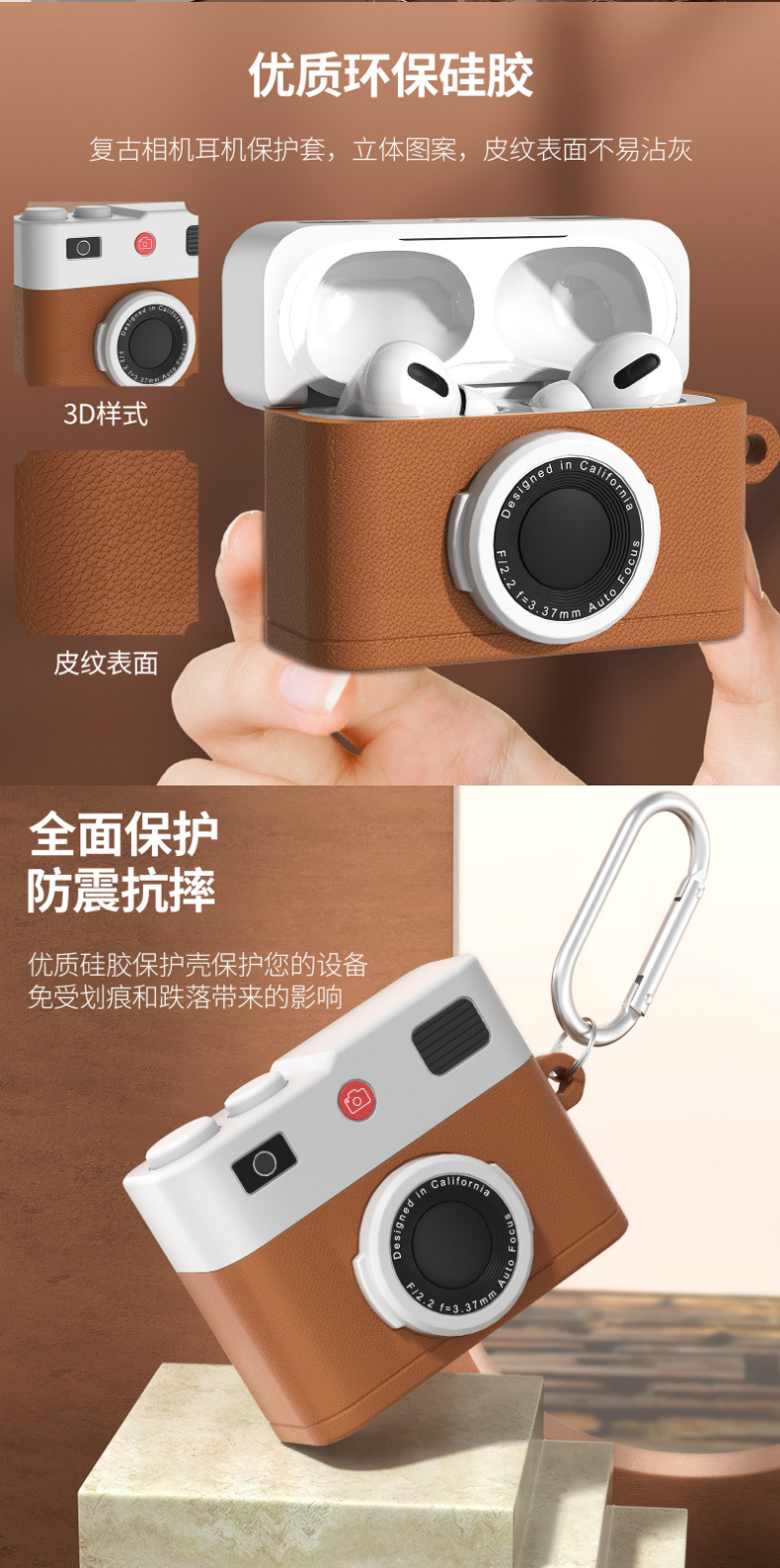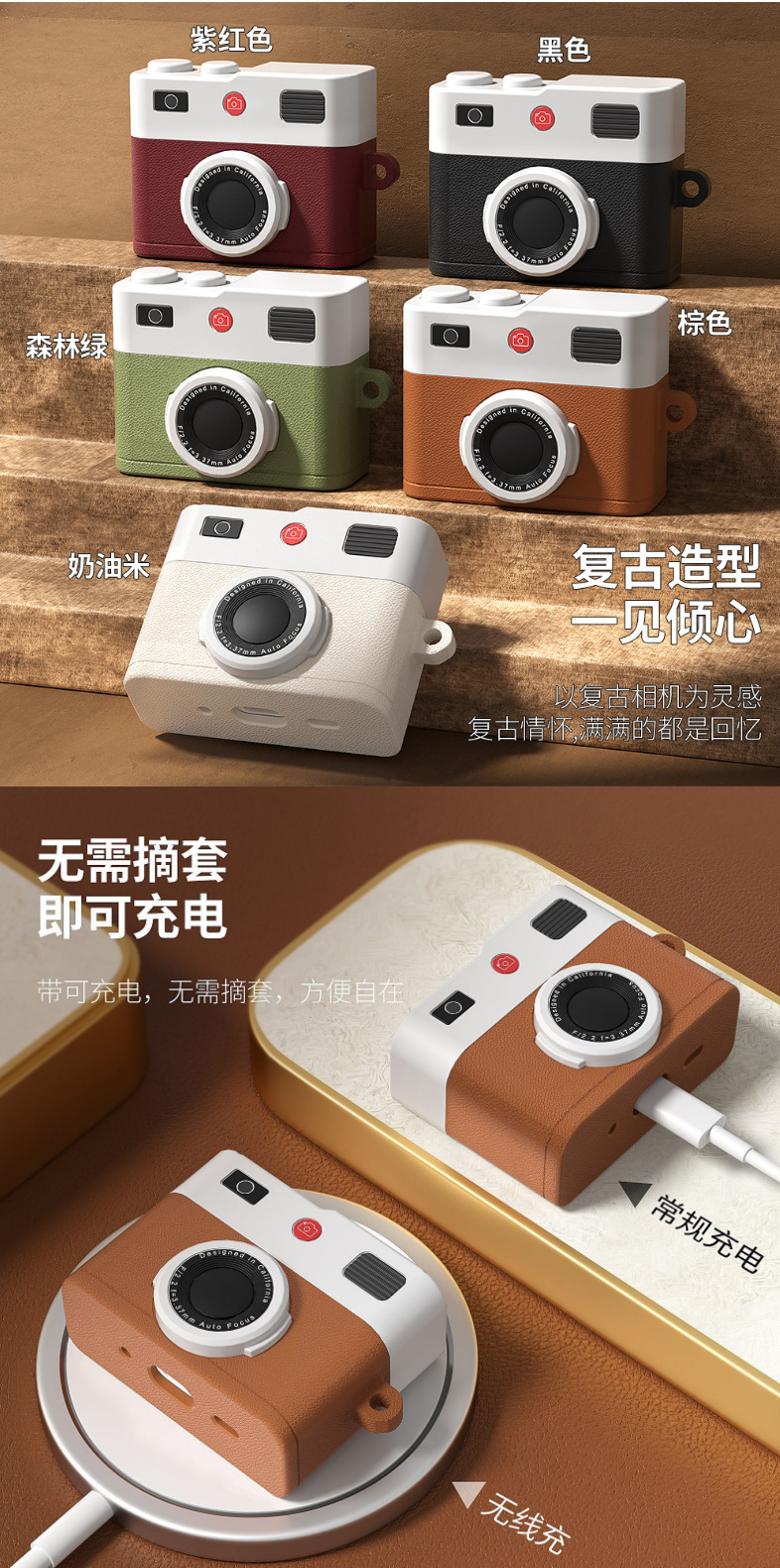 2025 new applicable airpods4 earphone case cute retro camera earmuff airpodspro2 earphone case