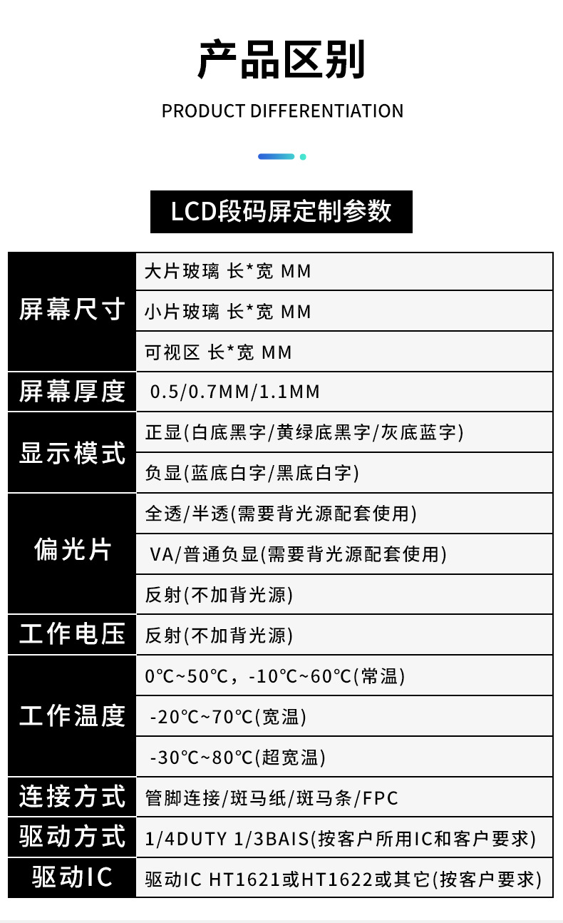 Manufacturers customized TN broken code screen LCD segment code screen HTN LCD display power display LCD screen