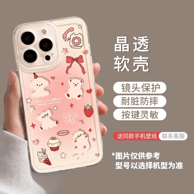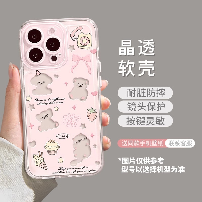 Bowknot Puppy Apple 17 Phone Case 17Promax Anti-Drop 17Pro Pink Air Protective Case 16 Soft Case 15