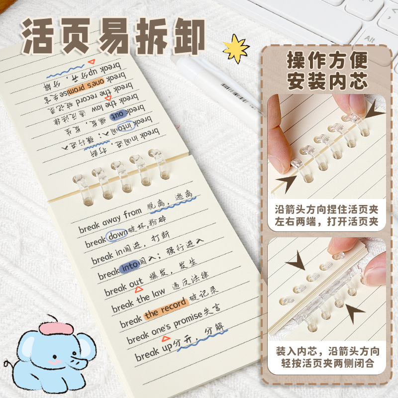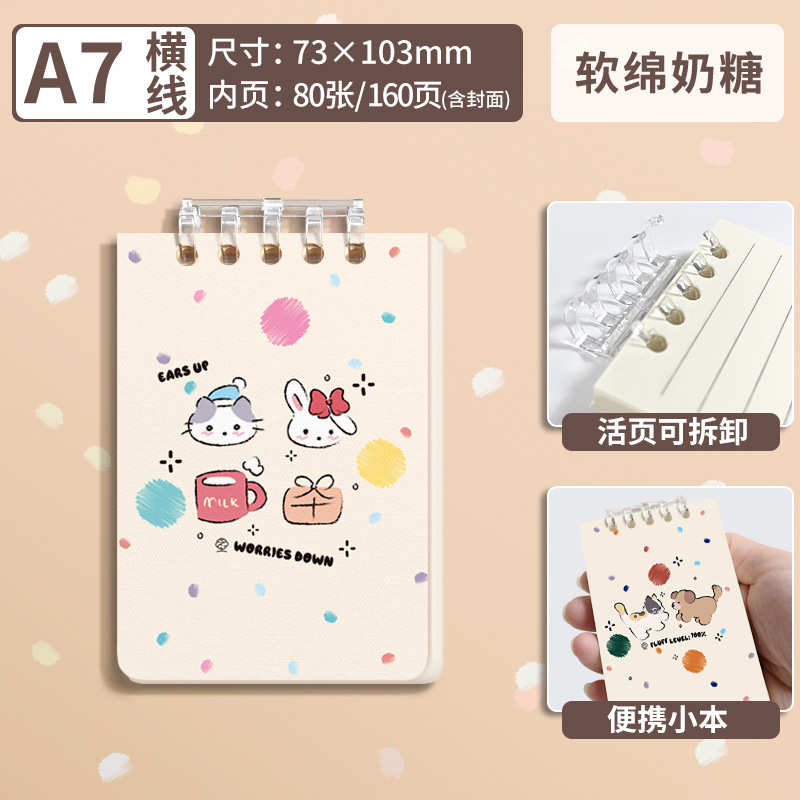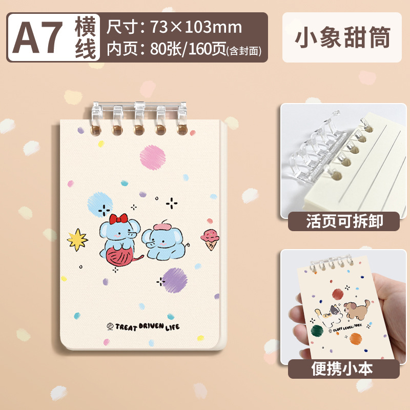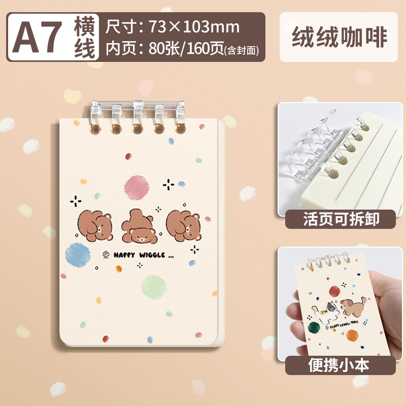 Notebook Notepad Loose-Leaf Lined Paper Student Cover Coil Cute Hand-Thickened Animal Series A7