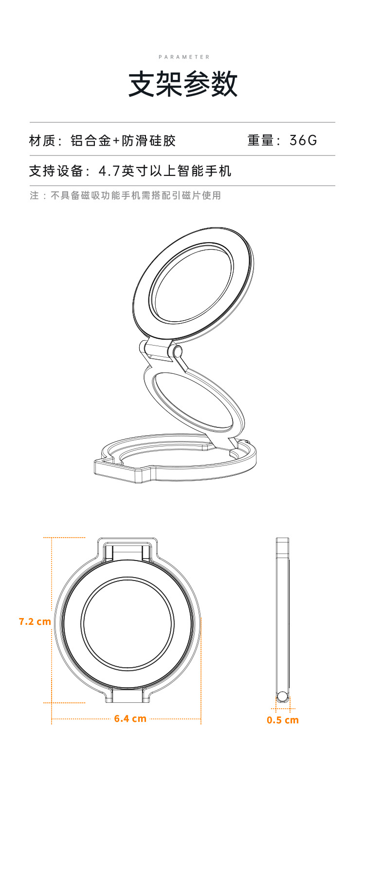 Magnetic Mobile Phone Holder Desktop Lazy Holder Aluminum Alloy Foldable Magnetic Ring Buckle Free of Adhesive Magnetic Ring